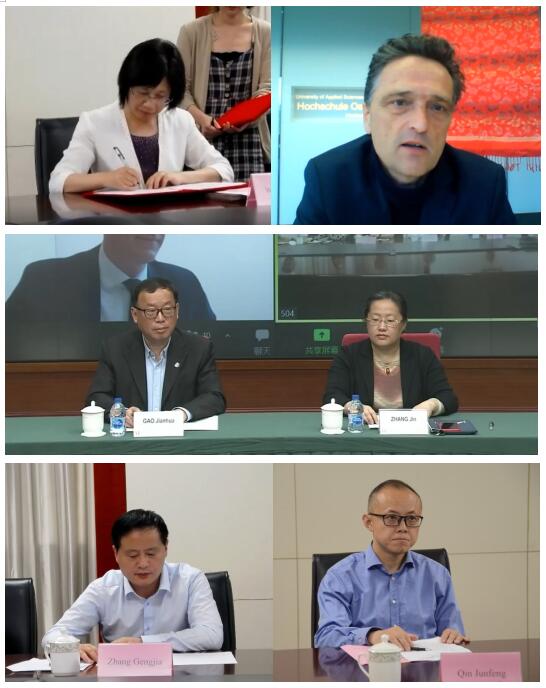 Anschlie?end unterzeichneten die Leiter der drei Hochschulen die Kooperationsvereinbarung und es wurden jeweils die Er?ffnungszeremonie der Yangtze River Delta Base und der German Base der Sino-German Open Online Learning Platform durchgeführt. Schlie?lich riefen die drei Parteien das duale System Online- und Offline-Ausbildung ins Leben.