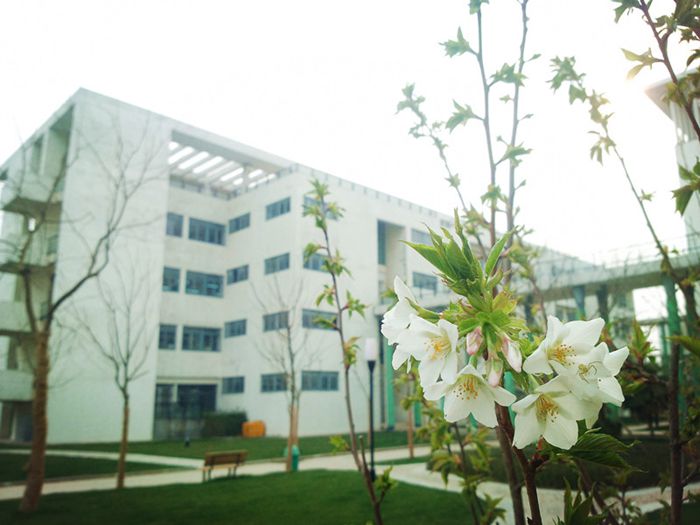 走入一區校園,銀杏枝頭的雀兒便歡歌相迎。恐人不知春消息,一曲迎春與君聽。兩旁高枝任它們追逐相嬉,一跳一躍間便譜出樂章無限。令人一見就恨不得身添雙翼,也化作一只鳥兒,飛上枝頭去看那初生的新芽,為它歌一首生的贊歌!由杏樹指路,鳥雀相引,讓人在滿目風光中忘了腳下已走過了幾步路。繞過行知樓,映入眼中的,是一湖春水平如鑒,九曲小橋蜿如龍。你看那三三兩兩結伴同游的學生們,輕移蓮步,怕驚了碧水;慢吐鼻息,恐散卻游魚。柳絮紛紛,點在湖邊青苔;亭閣隱隱,映入水中綠樹。幾位留學生也趁著煦日暖陽,在這頗具中國古風的小亭中談笑風生。石橋分水色,照影團圓中。水色隨春變,入畫意無窮。藝術樓的琴音與歌聲隨風飄來,舞動了垂柳,陶醉了櫻花,喚醒了羽衣甘藍。誰不愛這春動校園,一片盎然?