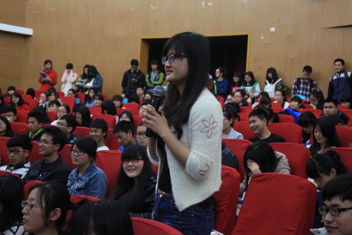 開班典禮結束后,進行了第一次授課。來自新安晚報資深記者鐘虹結合自身的經驗,與與會的同學分享了自己“累并幸福著”的記者生涯中的點滴故事?!叭绻屇阌梦鍌€關鍵詞來表述記者的工作,你會想到哪些詞?”一開場,鐘虹便拋出這個問題與同學們進行互動?!翱唷⒊袚?、正義、勇敢……”互動中同學們積極發言,發散的思維調動了現場的氣氛。而后,鐘虹從“自由、跨界、突破、壓力與榮光”五個方面分享了自己的感受。從“深夜暴雨街頭采訪”到“合肥新一輪老舊小區改造”,從“隨時待命,倚馬可待”到“換新角度思考問題”一個個動人的故事引發了現場同學對記者這一職業的期待。然而,記者并非如表面看到的那樣光鮮亮麗,分享中,鐘虹也講述了自己與同事遇到的各種壓力與危險。一件件鮮活的事例暗藏著記者這一職業不為人知的辛苦與壓力。雖然有著種種危險和困難,但記者的一篇報道能解救被囚少女,能救助身患絕癥的病人,能給受難者帶來陽光和雨露,她深深地感慨道:“心中始終要保持這份榮光,因為這是對自己的尊重,也是對這份職業的敬意?!贝舜问谡n在一段饒有趣味的視頻中結束,視頻中展示了新安晚報記者們的日常生活,有趣的視頻使現場氣氛達到高潮。