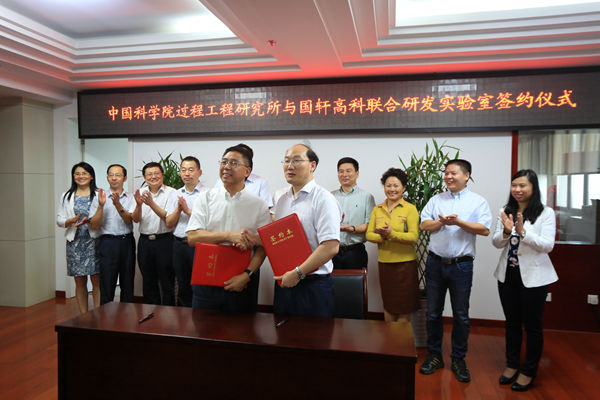 隨后,在與會領導的共同見證下,中科院過程工程研究所與國軒高科動力能源股份公司簽訂了關于《5V高壓鋰離子電池電解液研發》項目的合作協議。王翔副市長、張鎖江所長與蔡敬民書記共同為聯合研發基地揭牌。