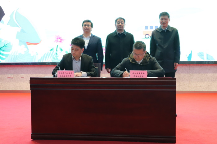 白義香對繁昌區來校開展招聘活動表示歡迎。他簡要介紹了學校的發展歷程及人才培養情況,希望校地深化合作,共謀發展。瞿輝詳細介紹了繁昌區經濟社會發展情況和人才政策。繁昌區人社局與校學生處簽訂了推進人才培養與實習就業合作協議書。