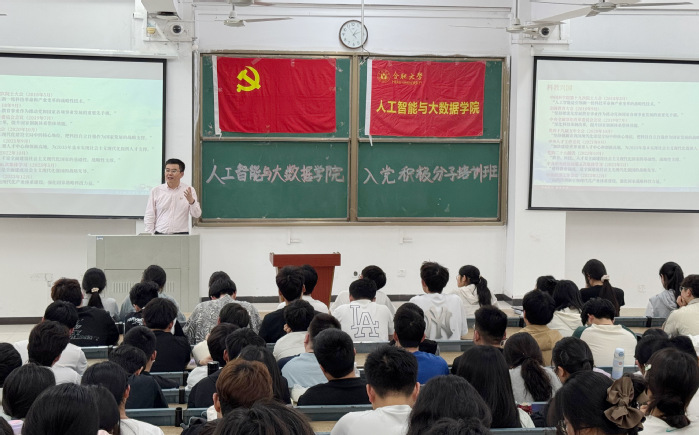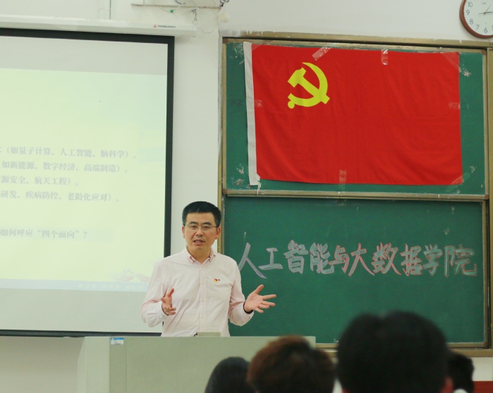 人工智能與大數(shù)據(jù)學(xué)院入黨積極分子培訓(xùn)班學(xué)員以及任永聯(lián)系的該院學(xué)生第三黨支部全體黨員到場聆聽。