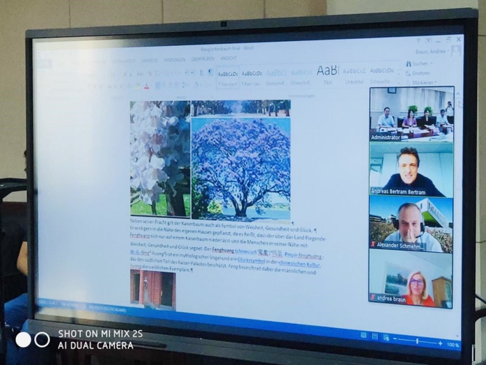 Schlie?lich stellte Prof. Dr. Andreas Bertram den an ihrer Hochschule gepflanzten Gesundheitsbaum vor, wünschte allen gute Gesundheit w?hrend der Epidemie und freute sich darauf, die Kommunikation und den Austausch mit Frau Prof. Dr. Wu Chunmei an der Universit?t Hefei oder der Hochschule Osnabrück weiter zu st?rken.
