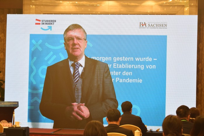 安德烈亞斯·漢塞爾以《明天如何成為昨天:關于疫情下建立在線學習的報告》為題作了報告。他從薩克森州涉及高校的戰略性文件、高等教育的目標設置等方面介紹了疫情前德國高等教育的情況和德國應用型大學在疫情期間線上教學的研究與實踐,并針對在實踐中遇到的問題提出了許多有建設性的意見和具體的舉措。他認為,線下教學、輔以線上,將是未來發展的方向。