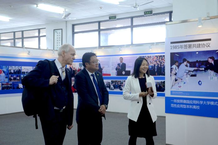 賀德滿充分肯定了我校與德國合作的成果。他指出,讓學生學以致用、將高校教育與社會需求結合起來是當下面臨的挑戰,合肥學院在應用型人才培養方面的探索對德國高校具有啟發意義。希望我校與德國高校能夠雙向學習,在“學以致用”等領域拓展合作交流的深度與廣度。