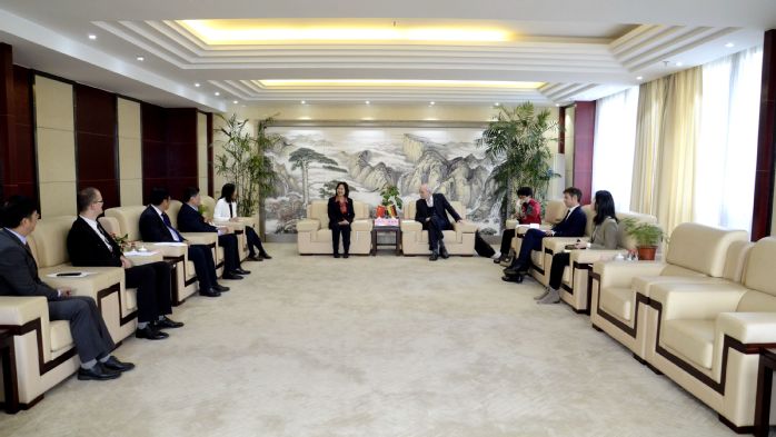 10月22日,新任德國駐上海總領事賀德滿(Mr.Pit Heltmann)率代表團訪問合肥學院。校長吳春梅會見了賀德滿一行,黨委委員、宣傳統戰部部長賈峰,黨委委員、教務處處長王曉峰,黨政辦主任汪文忠,國際交流合作處處長張慧,大學生創新創業教育中心主任劉沛平,中德教育合作示范基地(基金)辦公室主任劉金平等參加會見。