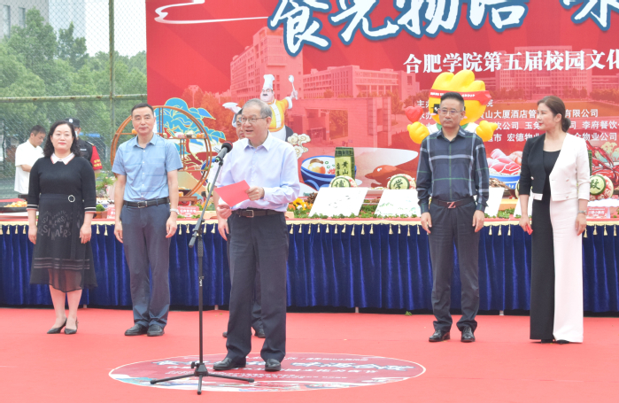 5月29日下午,由學校主辦、黃山大廈集團承辦的第五屆校園文化美食節在三期運動場舉辦。黨委書記王其東、合肥黃山大廈酒店董事長王建、合肥黃山大廈酒店集團總經理鄭群等受邀出席,財務處、后勤集團等部門負責人及部分師生代表參加活動。