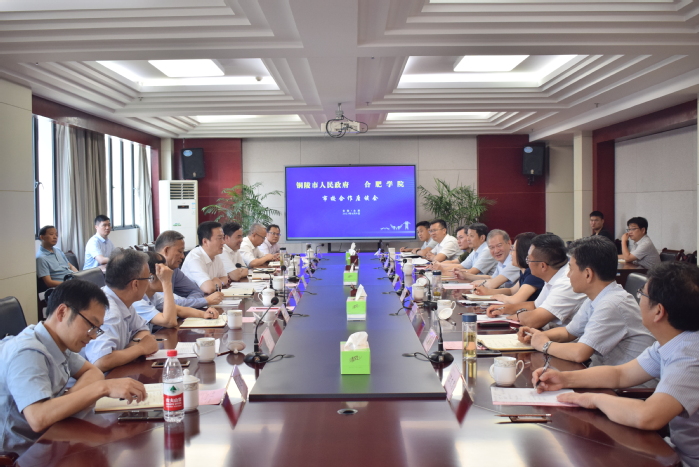 王其東對孔濤一行表示熱烈歡迎。他說,近年來銅陵在推動傳統產業轉型升級,培育壯大戰略性新興產業上取得了顯著成效,產業特色鮮明、優勢明顯,與合肥學院專業發展有著眾多契合之處,雙方未來合作空間廣闊。合肥學院將在夯實現有合作的基礎上,攜手銅陵學院積極參與和推動銅陵經濟社會高質量發展,認真做好合作大文章,著力解決發展新難題,努力打造校地合作、校校合作的新典范。