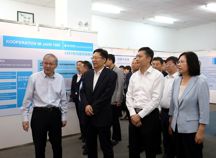 會前,劉玉杰一行先后參觀了大眾學院智能制造產教融合實踐中心、多模態工業設備狀態監測實驗室及中德合作成果展廳等,詳細了解學校學科建設、人才培養、學生就業等情況。