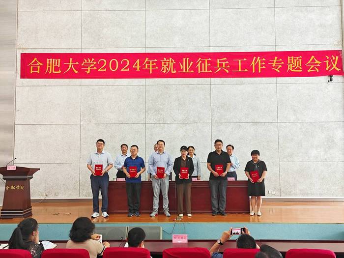 5月31日下午,我校在圖書館學(xué)術(shù)報(bào)告廳B廳召開2024年就業(yè)征兵工作專題會(huì)議。會(huì)議總結(jié)2023年就業(yè)征兵工作,表彰2023年就業(yè)先進(jìn)集體和先進(jìn)個(gè)人,同時(shí)部署2024年就業(yè)征兵工作。校黨委書記王其東,副校長陳秀,黨委委員、副校長白義香,黨委委員、紀(jì)委書記、省監(jiān)委駐合肥大學(xué)監(jiān)察專員吳功福出席。