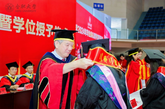 7月3日,合肥大學2024年畢業典禮暨學位授予儀式在體育館舉行。校領導出席,校學位評定委員會全體成員、2024屆畢業生代表、職能部門負責人、各二級學院學位評定委員會成員、教師代表參加。