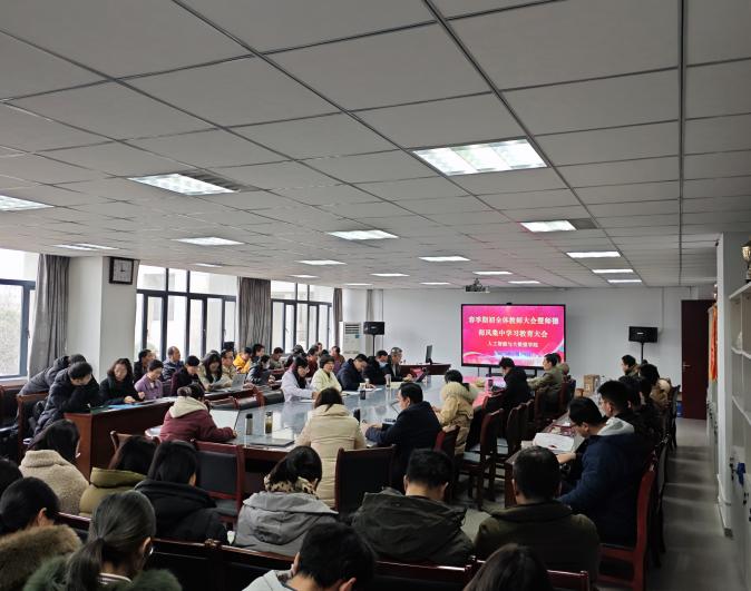 2025年2月14日下午,人工智能與大數據學院在36號樓305會議室召開了2025年春季期初全體教師大會暨師德師風集中學習教育大會,全體教職工齊聚一堂,會議由學院黨委書記牛欣主持。