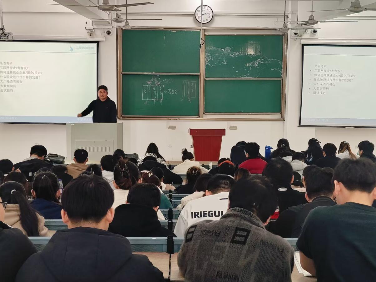 為幫助大學生樹立正確的就業觀念,強化學生的職業技能,提高其就業能力,2024年3月19日人工智能與大數據學院學生第一黨支部特邀優秀校友安徽數加信息科技有限公司創始人楊曉偉回到母校為我院大三同學開展就業指導課程。