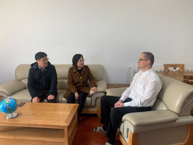 Am Vormittag des 17. Januar besuchte Universit?tspr?sidentin Wu Chunmeiden deutschen Experten Prof. Thomas Weise, der die Feiertage auf dem Campus verbrachte, um ihm ihre besten Wünsche für das Frühlingsfest zu übermitteln. Zhang Hui, Direktor des Büros für internationalen Austausch und Zusammenarbeit, begleitete sie bei dem Besuch.