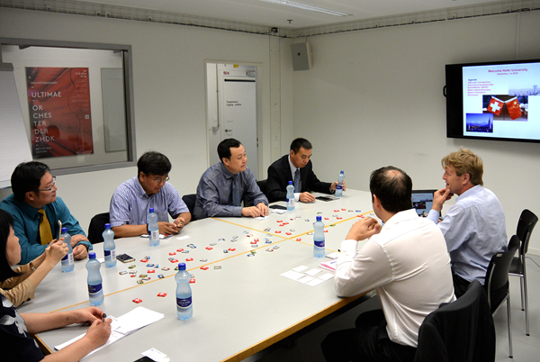 9月1日上午,我校代表團一行于瑞士會見了伯爾尼應用科學大學校長委員會成員、國際合作負責人艾根曼教授,以及其領導的瑞士大學聯合會國際項目小組成員、來自于瑞士圣加侖應用科學大學的克萊勒教授等人。雙方就校際合作的進一步拓展交換了意見,并重點就中瑞應用型高等教育合作領域內開展聯盟交流、教師培訓、學生交流等具體內容進行了確定,雙方還就今年11月教育部委托我校協辦“中瑞應用科學大學合作研討會暨中國應用科學大學展示會”的具體安排進行了對接。1日下午,代表團于伯爾尼拜會了我駐瑞士使館教育處,席茹參贊熱情歡迎了一行的到訪,并就我校開展中瑞交流合作方面工作給予了肯定,并詳細根據瑞士應用高等教育發展的特點,對今后我校的交往工作給出了引導性意見。