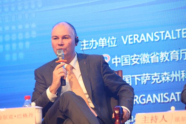 10月28日,在第九屆中德應(yīng)用型高等教育研討會(huì)上,合肥學(xué)院黨委書記蔡敬民教授與合肥學(xué)院合肥德國(guó)應(yīng)用科學(xué)學(xué)院德方院長(zhǎng)法爾克·霍恩教授主持進(jìn)行了校長(zhǎng)對(duì)話,德國(guó)奧斯納布呂克應(yīng)用科學(xué)大學(xué)校長(zhǎng)貝爾特拉姆教授、德國(guó)德累斯頓學(xué)院校長(zhǎng)亨塞爾教授、德國(guó)埃姆登/里爾應(yīng)用科學(xué)大學(xué)克羅伊茨教授、德國(guó)安哈爾特應(yīng)用科學(xué)大學(xué)校長(zhǎng)巴格丹教授與中國(guó)長(zhǎng)春工程學(xué)院校長(zhǎng)韓立強(qiáng)教授、石家莊學(xué)院校長(zhǎng)王俊華教授、長(zhǎng)沙學(xué)院校長(zhǎng)楊小云教授、許昌學(xué)院校長(zhǎng)趙繼紅教授圍繞第九屆中德應(yīng)用型高等教育研討會(huì)基于中國(guó)制造“2025”與德國(guó)工業(yè)4.0背景下應(yīng)用型大學(xué)的使命與變革展開共同探討。