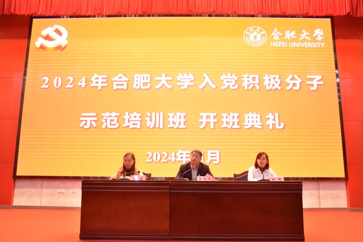 為深入學習宣傳貫徹黨的二十屆三中全會精神和習近平總書記考察安徽重要講話精神,示范帶動院級黨組織抓實入黨積極分子培養教育,11月5日中午,合肥大學在圖書館報告廳A廳舉辦2024年合肥大學入黨積極分子示范培訓班開班典禮。校黨委委員、副校長白義香,先進制造工程學院黨委書記杜娟,校黨委組織部組織科科長姚娜,先進制造工程學院輔導員威力旺,以及我校77名入黨積極分子參加此次開班典禮。開班典禮由杜娟主持。