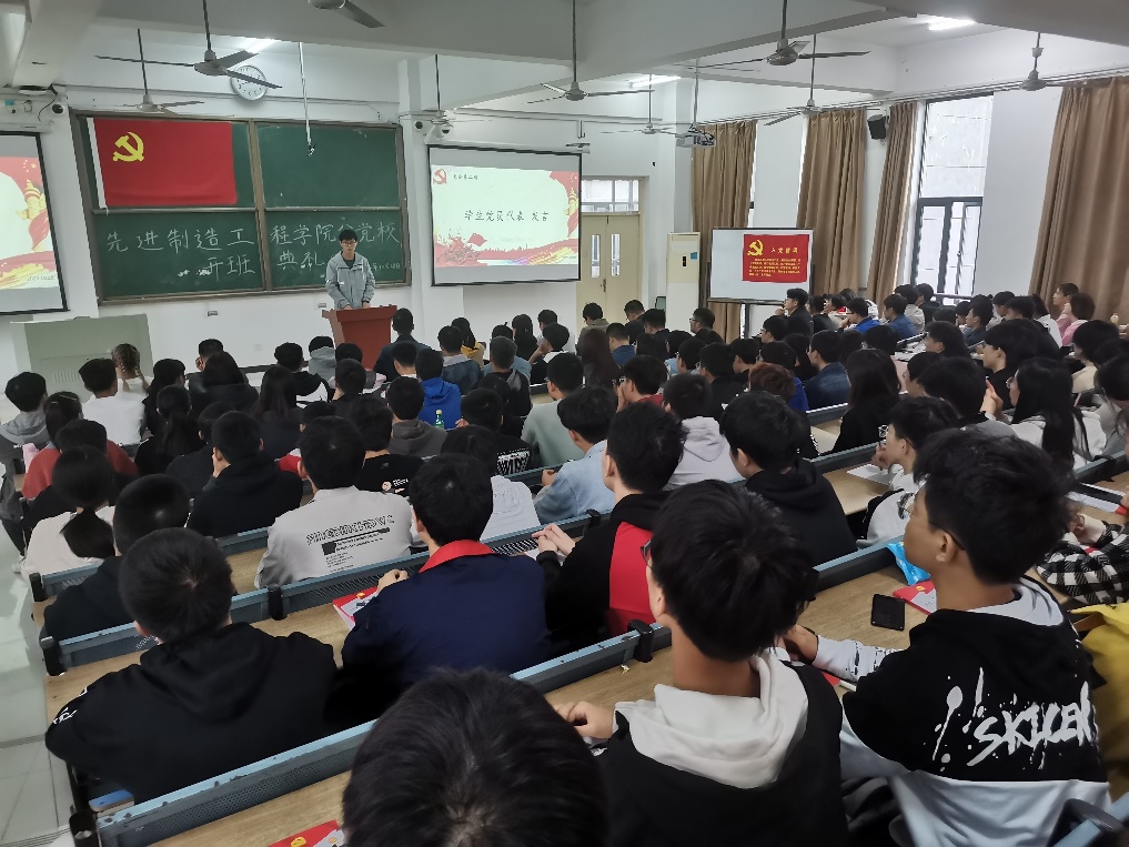 先進制造工程學(xué)院于1028日在383階梯教室舉辦了第二期黨課的開班典禮。本次會議由宋超老師主持,先進制造工程學(xué)院院長呂剛、黨委副書記李秀娟、團委書記李妍妍、學(xué)工辦主任耿俁老師、所有學(xué)生黨支部書記以及全體發(fā)展對象和入黨積極分子參加本次典禮。