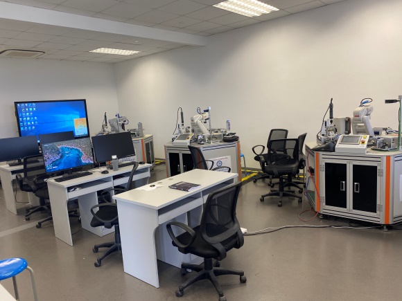 4月14日上午,秦強教授帶隊來到上海第二工業大學,在浦江學者朱文華教授的帶領下參觀了學校的工程訓練中心、智能制造實驗室和實訓室、智慧工廠虛擬仿真制造研究所等。隨后朱教授介紹上海第二工業大學做為應用型本科高校主要圍繞芯片制造、航空航天制造、先進制造、中醫藥等上海四大產業的需求為目標進行人才培養。秦強教授就合肥學院同樣作為應用型本科高校介紹,雙方有很多共同點和合作內容,希望雙方通過此次的交流學習,未來能夠在智能制造人才培養、實驗室建設和管理等方面有深入合作。