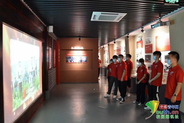 圖為調研團隊成員觀看歷史影片。中國青年網通訊員 譚浩 攝??????