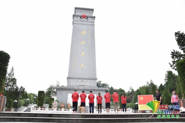 圖為團隊成員在革命烈士紀念碑前重溫入黨儀式。中國青年網通訊員 譚浩 攝