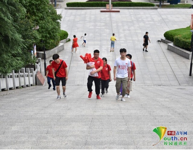 圖為調研團隊齊頭并進,共同攀爬階梯。中國青年網通訊員 譚浩 攝