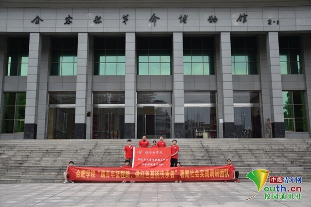 圖為調研團隊在金寨縣革命博物館前合影。中國青年網通訊員 譚浩 攝