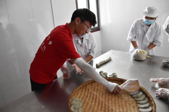 在前往柿樹崗鄉(xiāng)之前,調(diào)研團(tuán)隊(duì)通過網(wǎng)上查閱資料,了解到當(dāng)?shù)負(fù)碛卸囗?xiàng)市級(jí)和縣級(jí)非遺項(xiàng)目,政府和居民對(duì)非遺保護(hù)與傳承高度重視,政府通過政策進(jìn)行扶持,將非遺打造成當(dāng)?shù)匚幕?;?dāng)?shù)鼐用裨诶^承非遺文化同時(shí),積極尋找合適的繼承者傳授技藝,確保非遺文化薪火相傳。在探尋非遺過程中,調(diào)研團(tuán)隊(duì)有幸參與到非遺食品蒿子粑粑的制作過程中,品嘗美味的同時(shí),也親身感受蘊(yùn)藏在其中的文化基因。調(diào)研團(tuán)隊(duì)還近距離觀看了當(dāng)?shù)胤沁z項(xiàng)目“門歌”和“碟子舞”,了解其創(chuàng)作理念及傳承情況,深入感受當(dāng)?shù)剜l(xiāng)土人情。