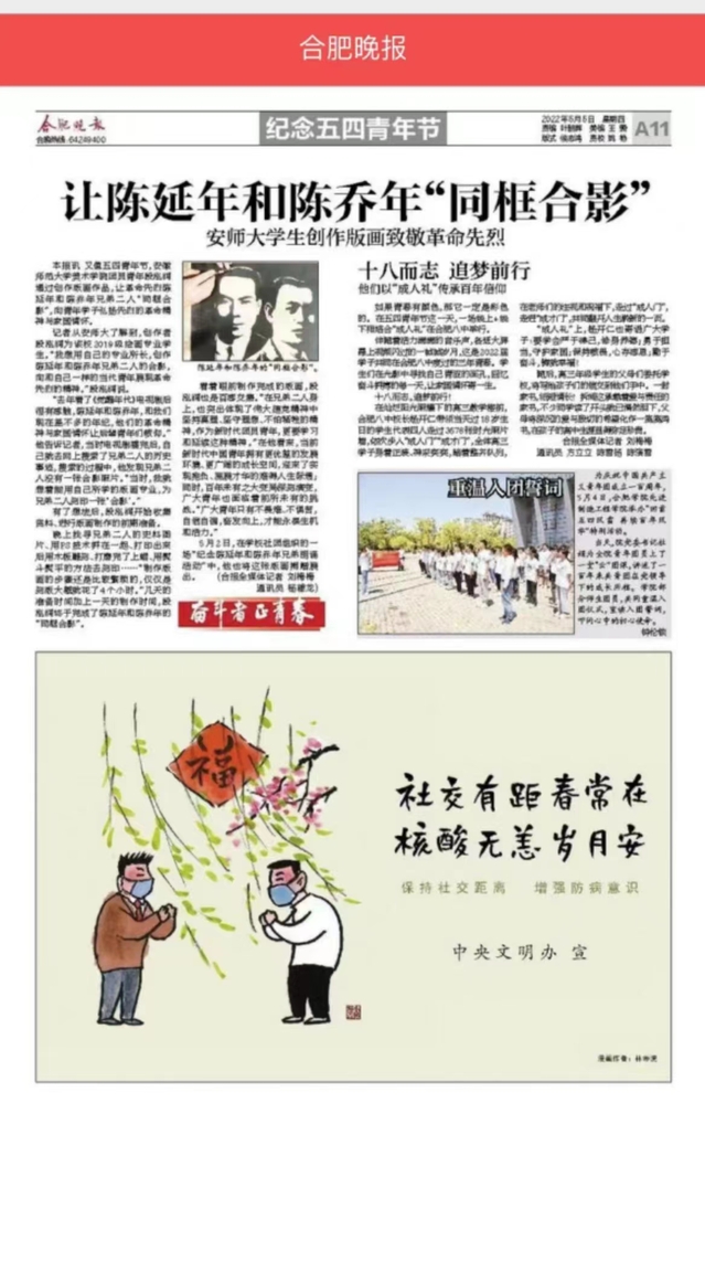 合肥晚報報道先進制造工程學院五四青年節團委活動