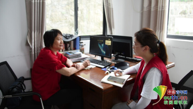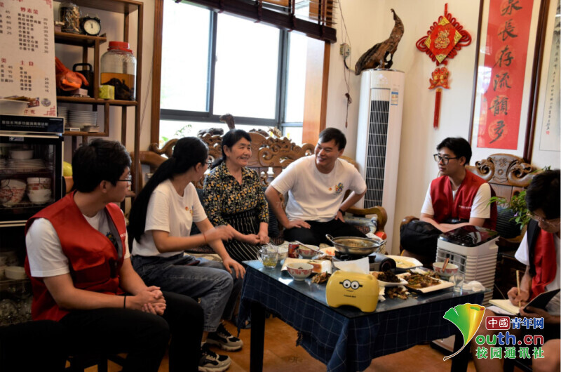 圖為調(diào)研團(tuán)隊成員采訪何家枝。中國青年網(wǎng)通訊員 江晨陽 攝