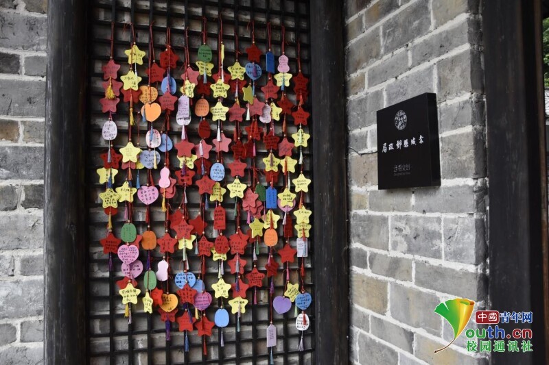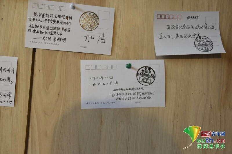 圖為調研團隊觀看赤色郵局門前游客留下的美好祝愿。中國青年網通訊員 管俊豪 攝