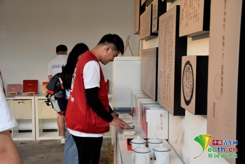 圖為調研團隊成員觀摩學習湯家匯鎮赤色郵政局歷史簡介。中國青年網通訊員 江晨陽 攝