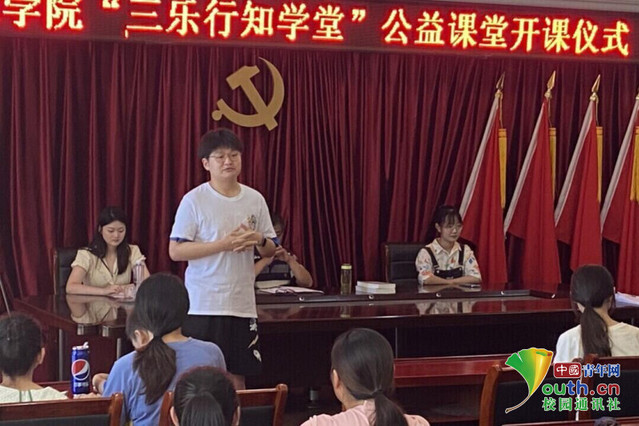圖為課堂開課儀式上,志愿者們分別向孩子和家長們介紹教學科目和教學內容。 中國青年網通訊員 章俊 攝