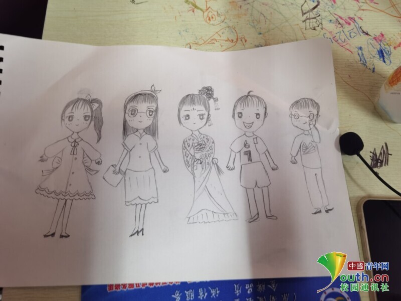 圖為公益課堂結束后小朋友送給志愿者們的畫像。 中國青年網通訊員 陶景瑞 攝