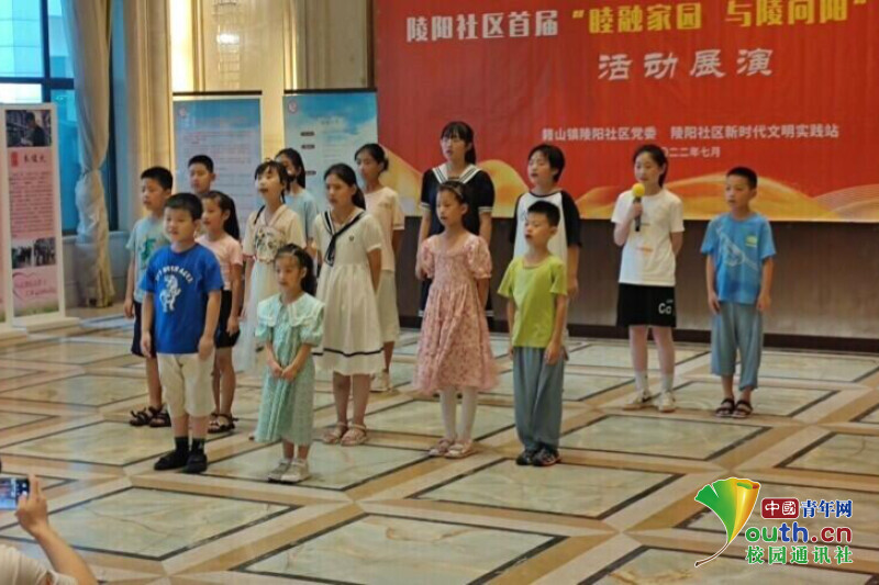 圖為當地社區開展的活動展演上,行知公益課堂的小朋友們合唱《同一首歌》。中國青年網通訊員 溫司君 攝