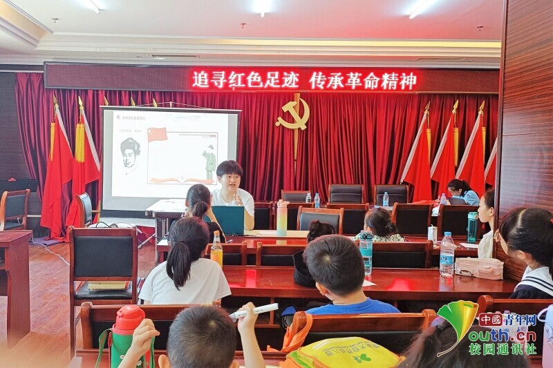圖為紅色黨史學習課上,志愿者向小朋友們講述黃繼光舍身堵槍眼的故事。 中國青年網通訊員 方誠 攝