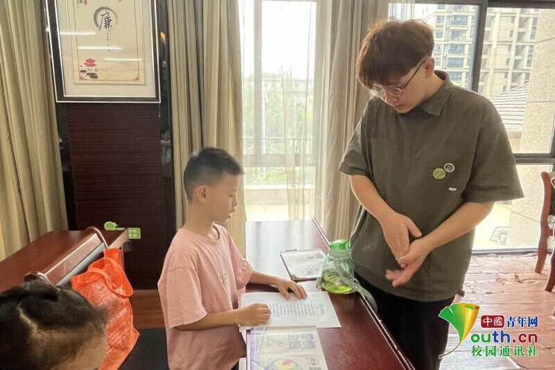 圖為課下,志愿者解答小朋友的作業疑惑。 中國青年網通訊員 陶景瑞 攝