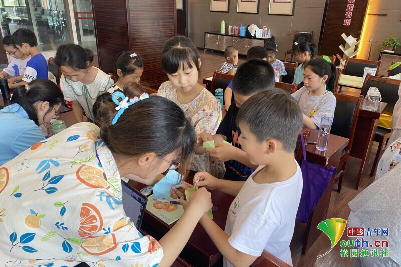 圖為折紙課上,志愿者教小朋友們折紙。 中國青年網通訊員 方誠 攝
