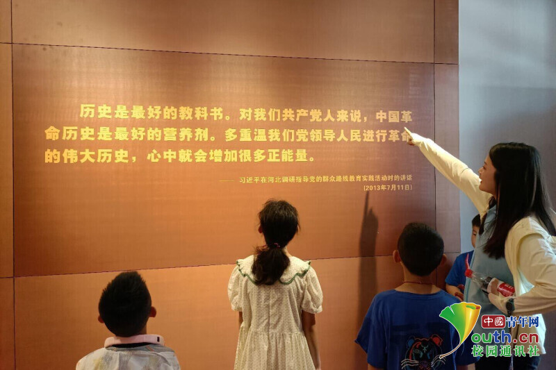 圖為在南陵縣革命歷史陳列館中,志愿者和小朋友們學習習近平總書記關于黨史學習的講話。中國青年網通訊員 章俊 攝