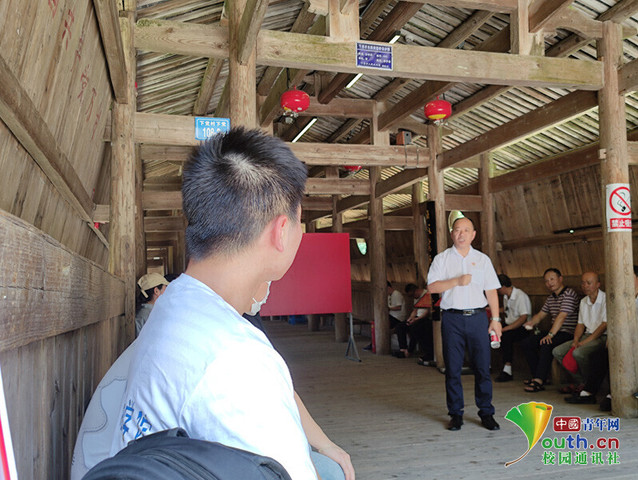 圖為調(diào)研成員聆聽(tīng)當(dāng)?shù)刂v解員的講解。 中國(guó)青年網(wǎng)通訊員 李棖棖 攝