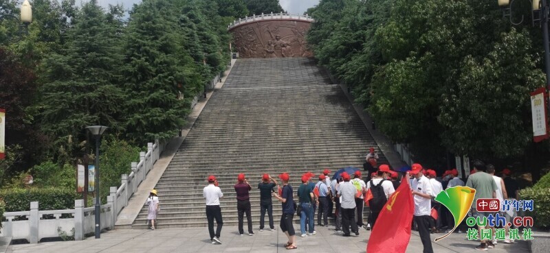 圖為調研成員與當地的參觀一起團隊登上紅軍廣場 中國青年網 陳鑫 攝