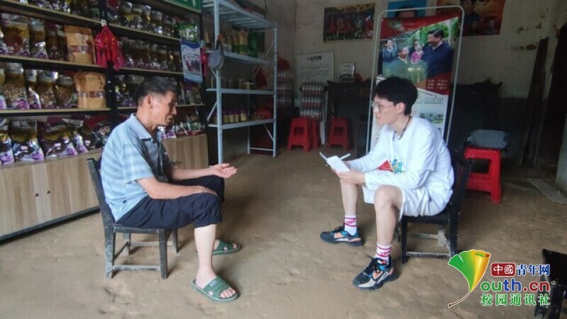 圖為調研成員正在采訪大灣村村民陳澤申 中國青年網通訊員 陳鑫 攝