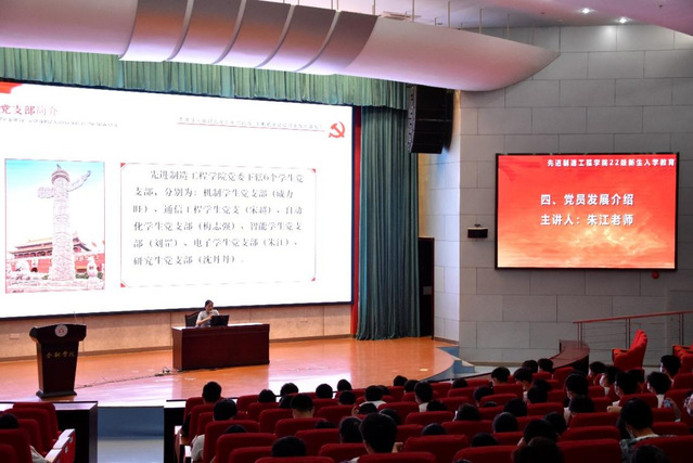 緊接著,為了加強先進制造工程學院的黨團建設,輔導員朱江老師向新生們介紹了黨的基本知識,介紹了先進制造工程學院下轄的六個學生黨支部,并詳細講述了發展黨員的工作流程,為黨團建設及新生入黨起到了良好的引導作用。