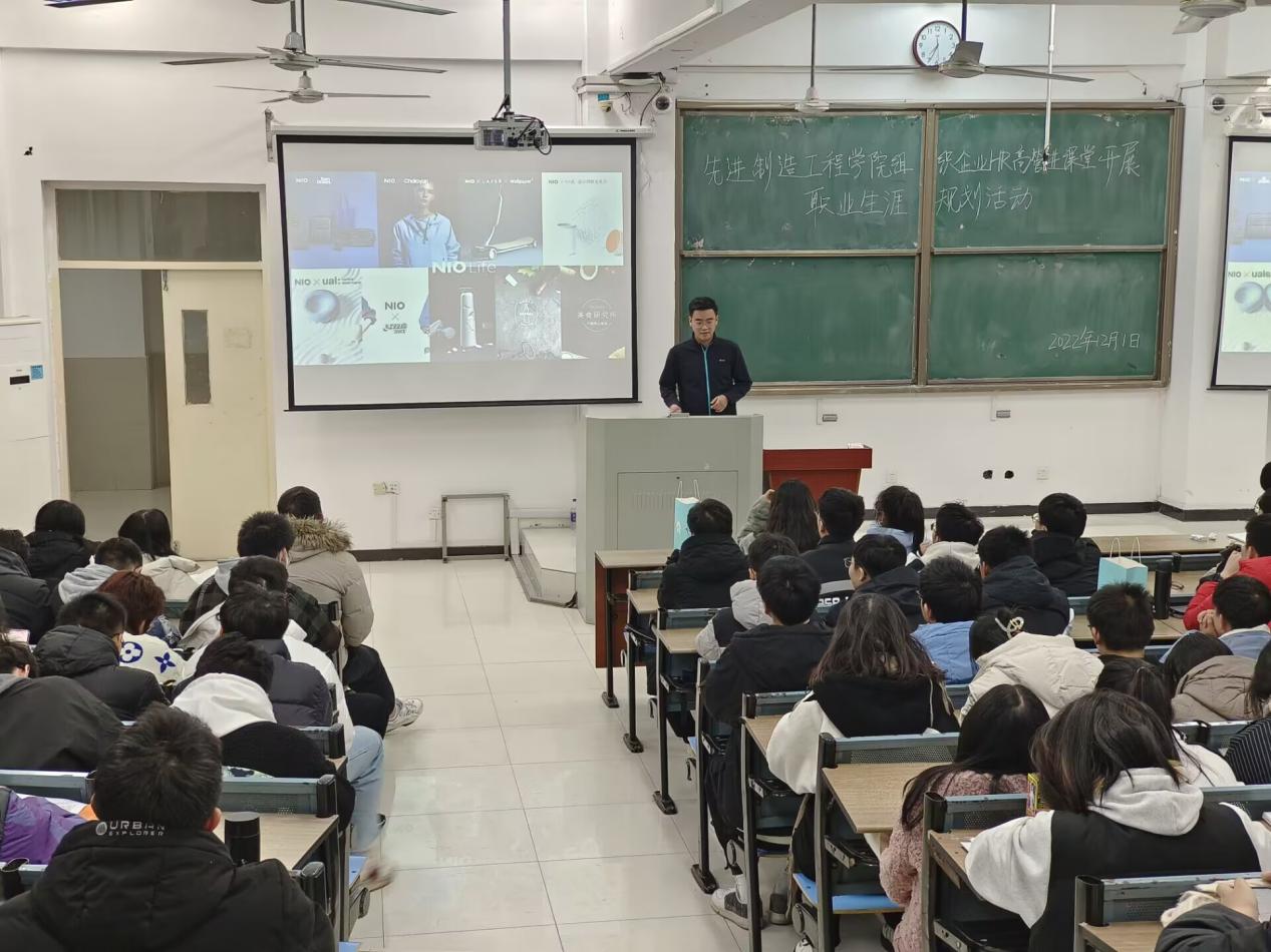 為了幫助學生明確自身職業目標,提高職業生涯的規劃意識,進一步增強我院學子求職能力,12月1日晚,先進制造工程學院于38棟3階梯教室組織企業HR高管進課堂開展職業生涯規劃活動,特邀我院優秀校友、蔚來先進制造基地店長吳恒前來宣講,我院部分學生積極參加本次活動,院黨委副書記蔡靈美、就業聯絡員張傲全程參與。
