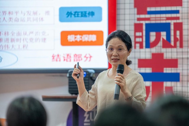 隨后,合肥學院馬克思主義學院直屬支部委員會書記、合肥學院馬克思主義學院副院長蘇冰教授以“學習二十大、奮進新征程”為主題,進行了深入學習和宣講活動。本次主宣講活動中,蘇冰教授從戰略部署、時代背景以及歷史方位三個方面對黨的二十大精神進行了深入細致的解讀。她勉勵同學們要立足當前國際國內形勢,心懷“兩個大局”,努力實現高水平科技自立自強。