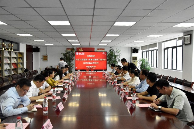 南京工程學院信息與通信工程學院黨委書記章啟成介紹了學院發展歷程和學院黨建發展成果,副院長張健介紹了學院的專業建設和教學工作,副書記盧娜圍繞第二課堂學分設置、科技競賽和學生培養等進行了交流,雙方還就集成電路專業建設等進行深入探討。