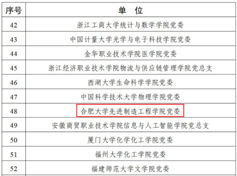 2024318日,教育部思想政治工作司對第四批新時代高校黨建示范創(chuàng)建和質(zhì)量創(chuàng)優(yōu)工作遴選結(jié)果進(jìn)行公示,合肥大學(xué)先進(jìn)制造工程學(xué)院黨委成功入選第四批“全國黨建工作標(biāo)桿院系”培育創(chuàng)建單位,實驗實訓(xùn)中心黨支部入選第四批“全國黨建工作樣板支部”培育創(chuàng)建單位。