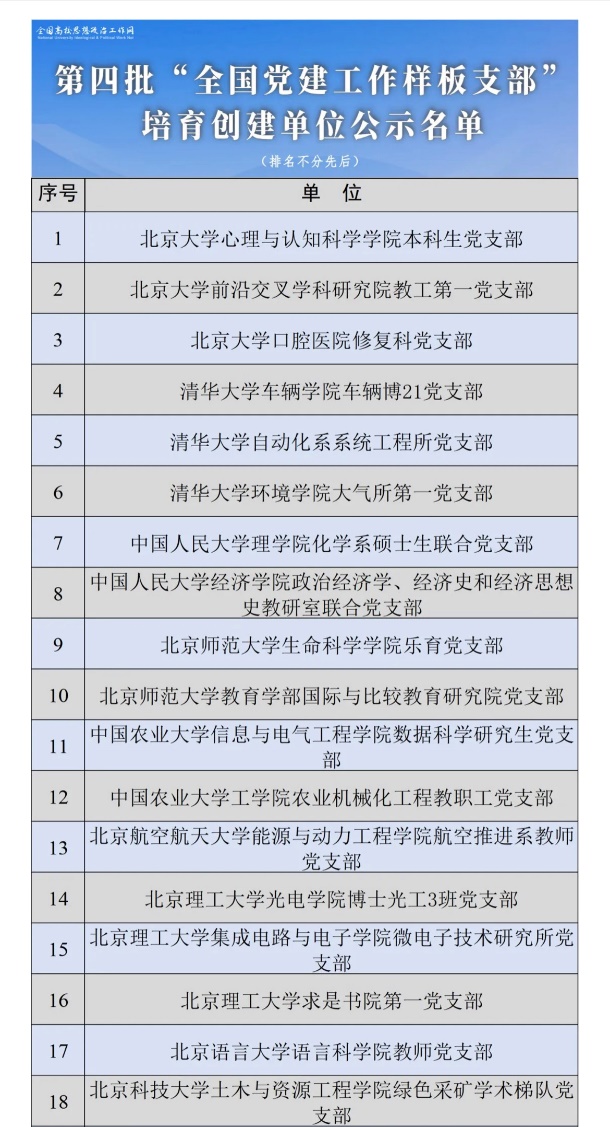 據悉,此次評選工作是根據《教育部辦公廳關于開展第四批新時代高校黨建示范創建和質量創優工作的通知》安排,經省級推薦、資格審查、專家評審、集中審議等多環節遴選后,最終產生了10個全國黨建工作示范高校、100個全國黨建工作標桿院系、1001個全國黨建工作樣板支部。