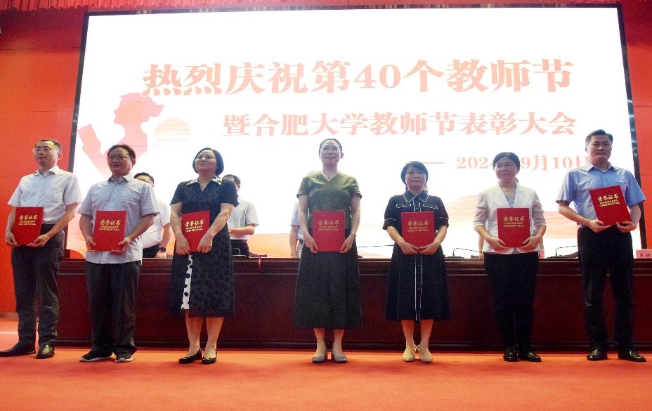 合肥大學2024年教師節大會上對我院獲得安徽省教育工作先進集體進行了表彰,胡學友院長代表學院領獎。