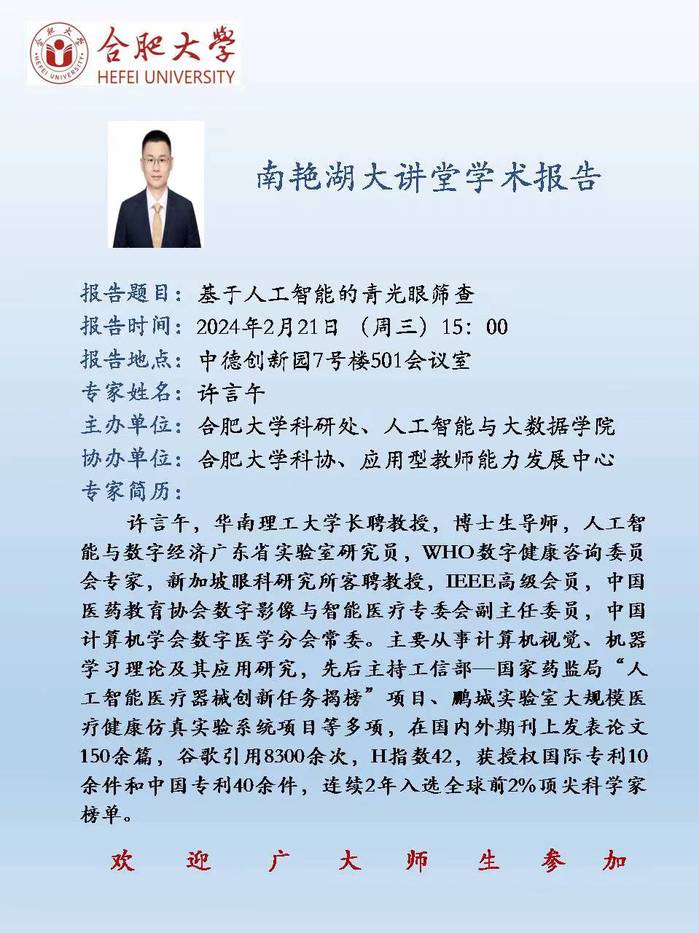 【南艷湖大講堂】基于人工智能的青光眼篩查